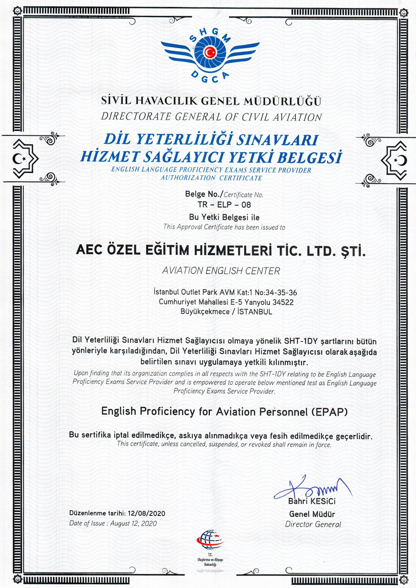 AEC (Aviation English Center) tarafından uygulanacak AEC-EPAP (English Proficiency for Aviation Personnel) sınavı;