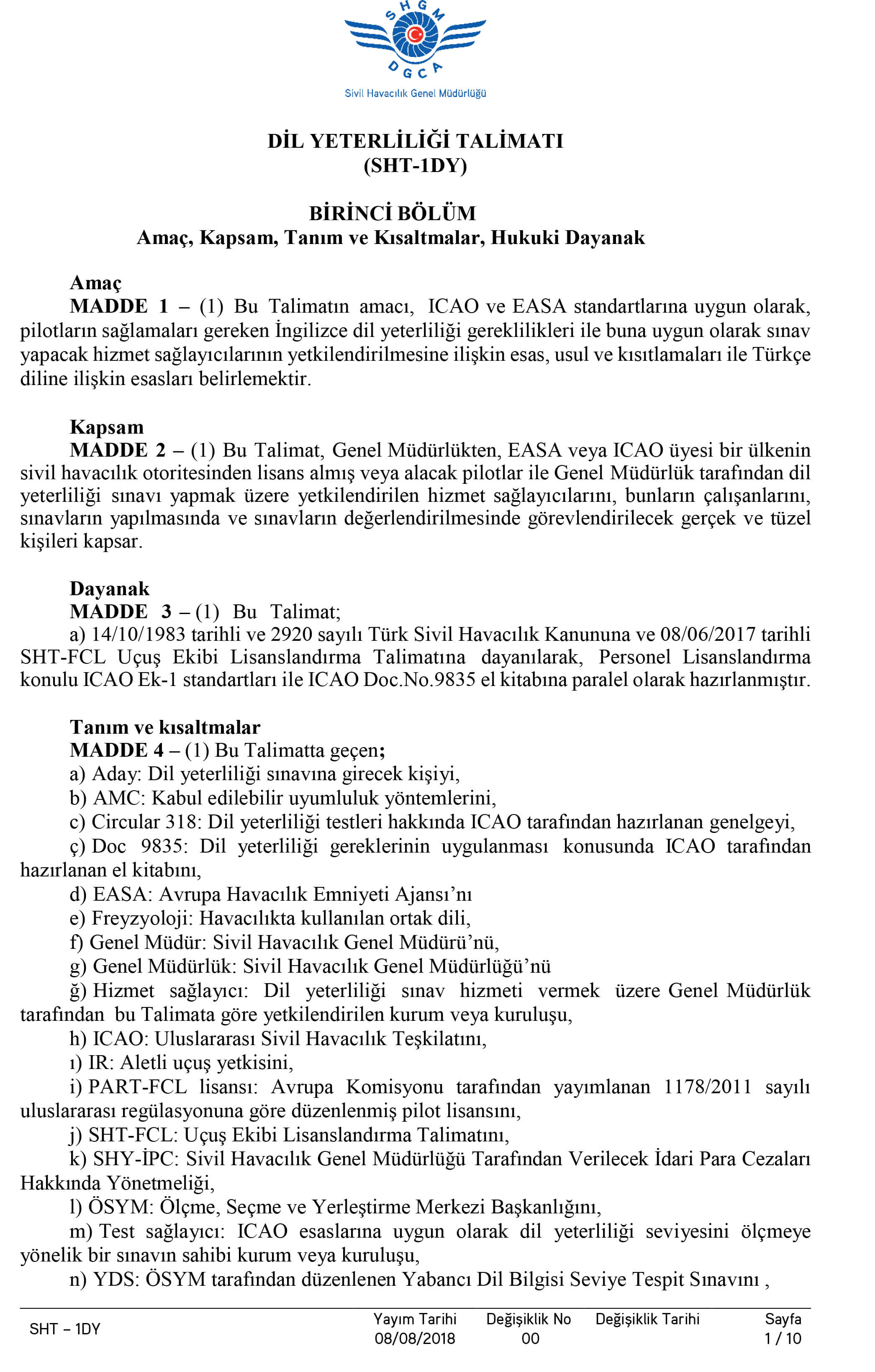Sınava katılan Adayın nihai puanı, ICAO Dil Yeterliliği Değerlendirme Cetveli konu başlıklarındaki puanlarının en düşük olanı olacak şekilde belirlenir.
